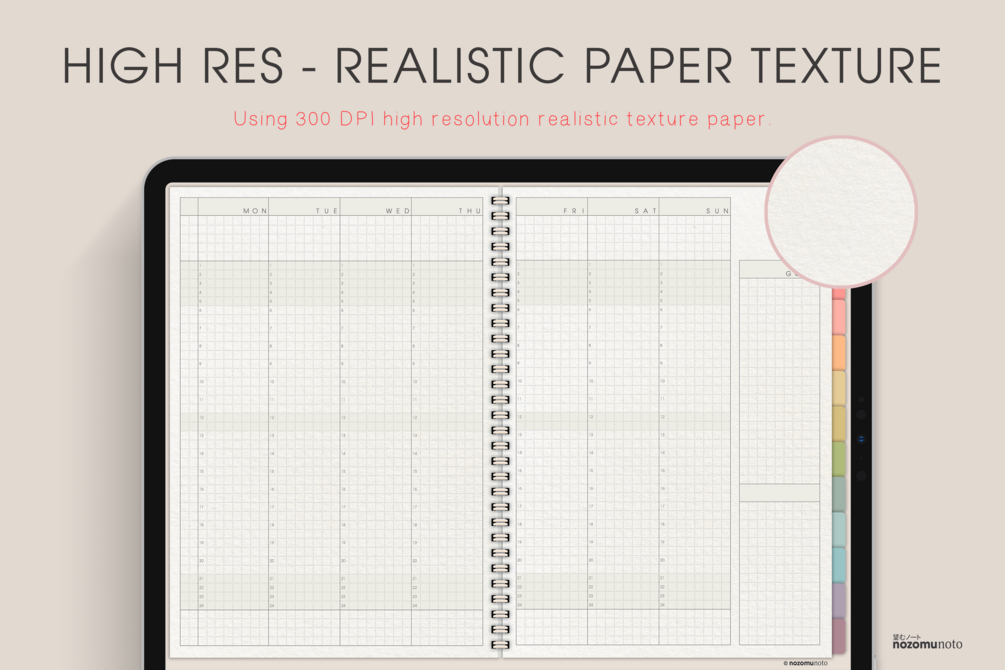 The digital notebook landscape template is using a realistic paper texture and realistic landscape layout, making it the perfect way to take your notes with you wherever you go. With this notebook, you can easily keep track of your thoughts and ideas, without having to worry about losing them. Just open up your PDF annotation app and start taking notes!